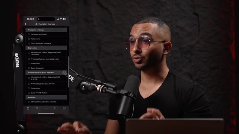 S'entrainer sur les protocoles d'hypnose adaptés aux divers troubles psychiques (troubles anxieux, troubles de l'humeur, addictions, manque de confiance, anneau gastrique virtuel, gestion de la douleur. Et apprendre à développer ses propres protocoles.