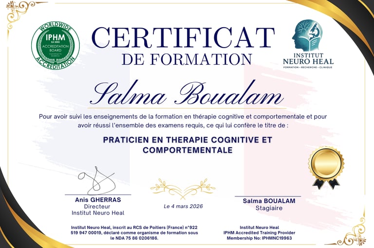 Module 5 : Examen et certification internationale de "Praticien en Thérapie cognitive et comportementale"