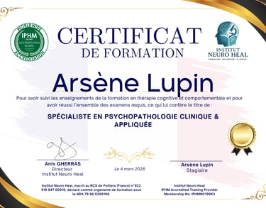 Une fois l’évaluation finale validée, vous obtiendrez une certification internationale accréditée par l’IPHM attestant de vos compétences en psychopathologie clinique appliquée.