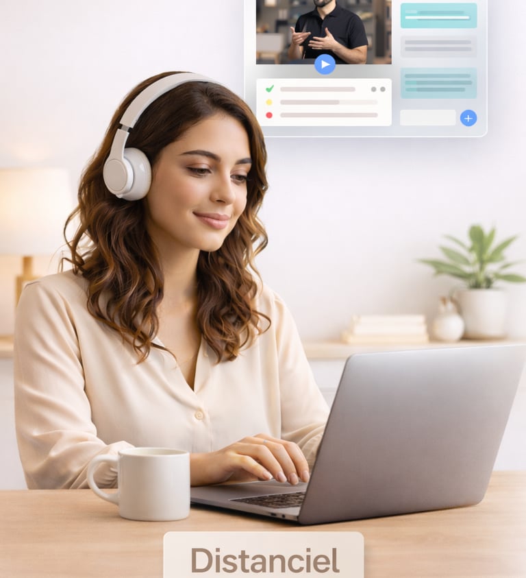 Vous avez la possibilité de vous former en présentiel ou alors choisir notre parcours 100% en ligne